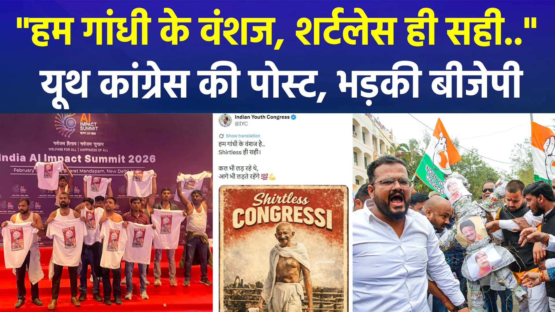 "हम गांधी के वंशज, शर्टलेस ही सही..", यूथ कांग्रेस की पोस्ट, भड़की बीजेपी