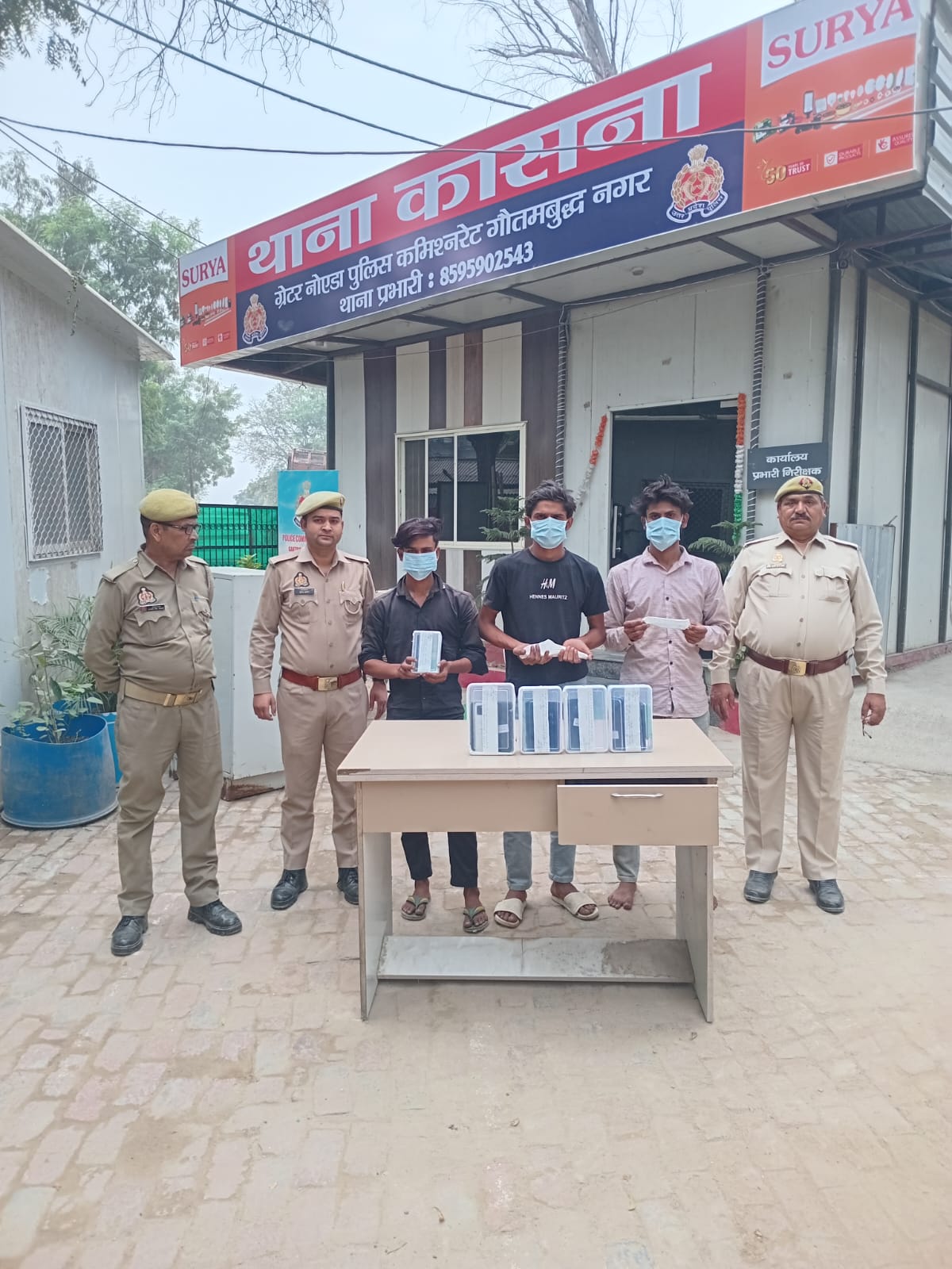 नोएडा। ग्रेटर नोएडा क्षेत्र के थाना कासना पुलिस ने मोबाइल फोन व मोटरसाइकिल चोरी करने वाले एक गिरोह के तीन शातिर बदमाशों को गिरफ्तार किया है। पुलिस ने अभियुक्तों के कब्जे से चोरी के 28 मोबाइल फोन, 1 मोटरसाइकिल व अवैध शस्त्र बरामद किया है। पुलिस अभियुक्तों के अन्य आपराधिक इतिहास के बारे में जानकारी एकत्र कर रही है।