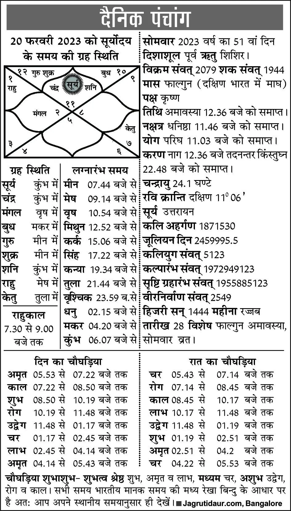 फाल्गुन कृष्ण पक्ष अमावस्या, सोमवार, 20 फरवरी 2023 का दिन आपके लिए कैसा रहेगा। आज आपके जीवन में क्या-क्या परिवर्तन हो सकता है, आज आपके सितारे क्या कहते हैं, यह जानने के लिए पढ़ें आज का भविष्यफल।